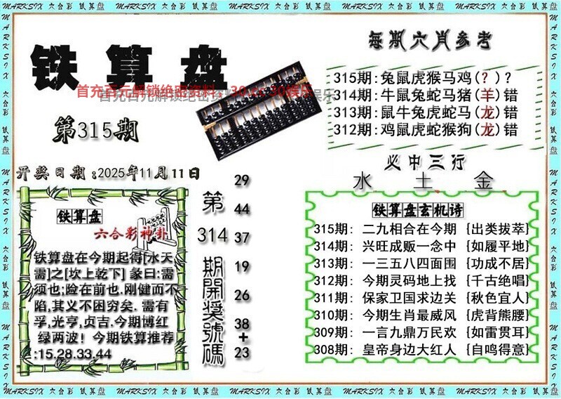 | 315期:财富波色【蓝波-红波】开:虎04中 |