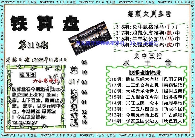| 319期:五尾中特『4.5.6.7.8』开:發00中 |